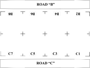NOTE: When standing in the road or aisle, your space number will be facing you and in the center of your space. The “+”s, “T”s and “L”s designate the boundaries of your space(s). The “T”s and “L”s may be upside down and/or sideways. There may be a solid line showing the front and/or rear boundaries.